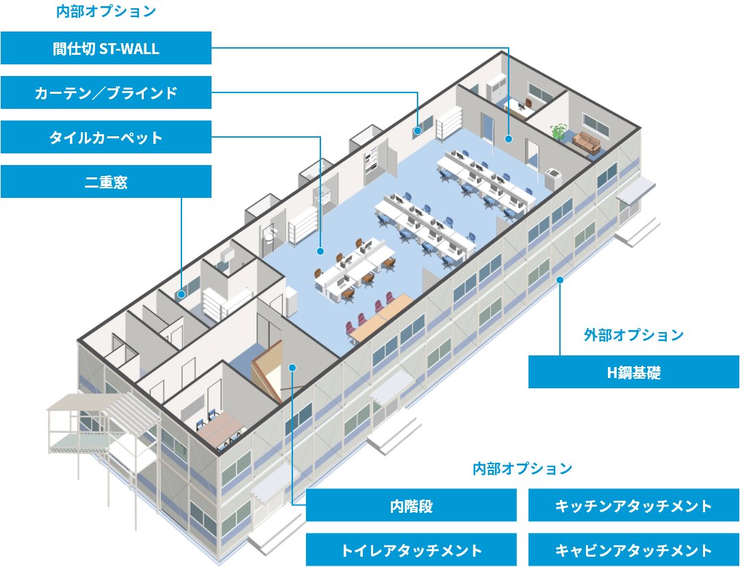 ※3階建ては工事現場内の工事用仮設建物としてのみご利用いただけます。(レンタル専用)